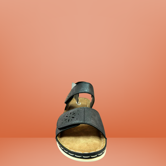 Sandalia de Plataforma Negra con Hebillas Doradas - Pauile- 3769