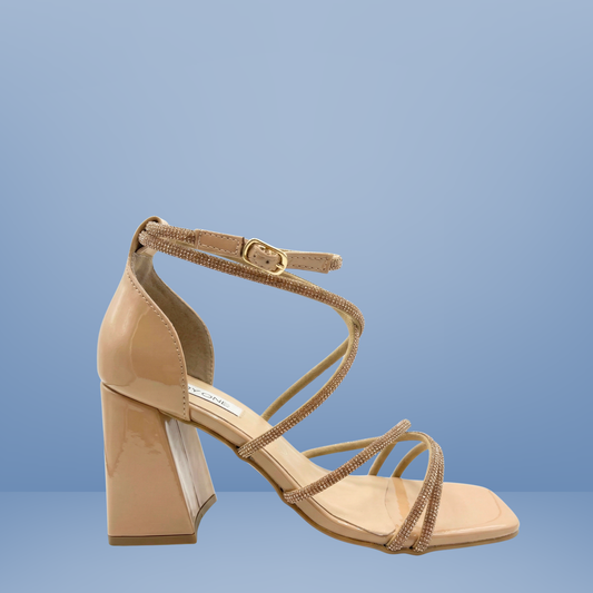 Sandalia de Tacón con Tiras Brillantes y Pulsera al Tobillo - AD8301