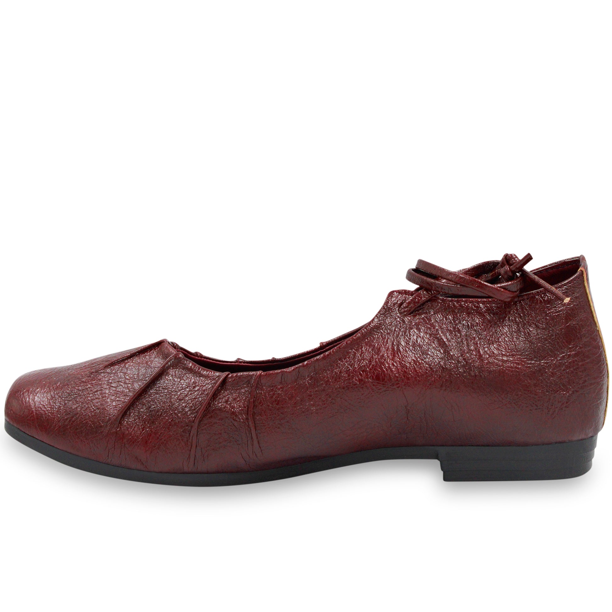 Añade un toque elegante y versátil a tu look con esta balerina en tono vino. Su diseño clásico con delicados pliegues frontales y lazo ajustable en el talón ofrece comodidad y estilo para cualquier ocasión. Ideal para combinar con vestidos, jeans o conjuntos casuales, será tu mejor opción para lucir femenina y cómoda durante todo el día.