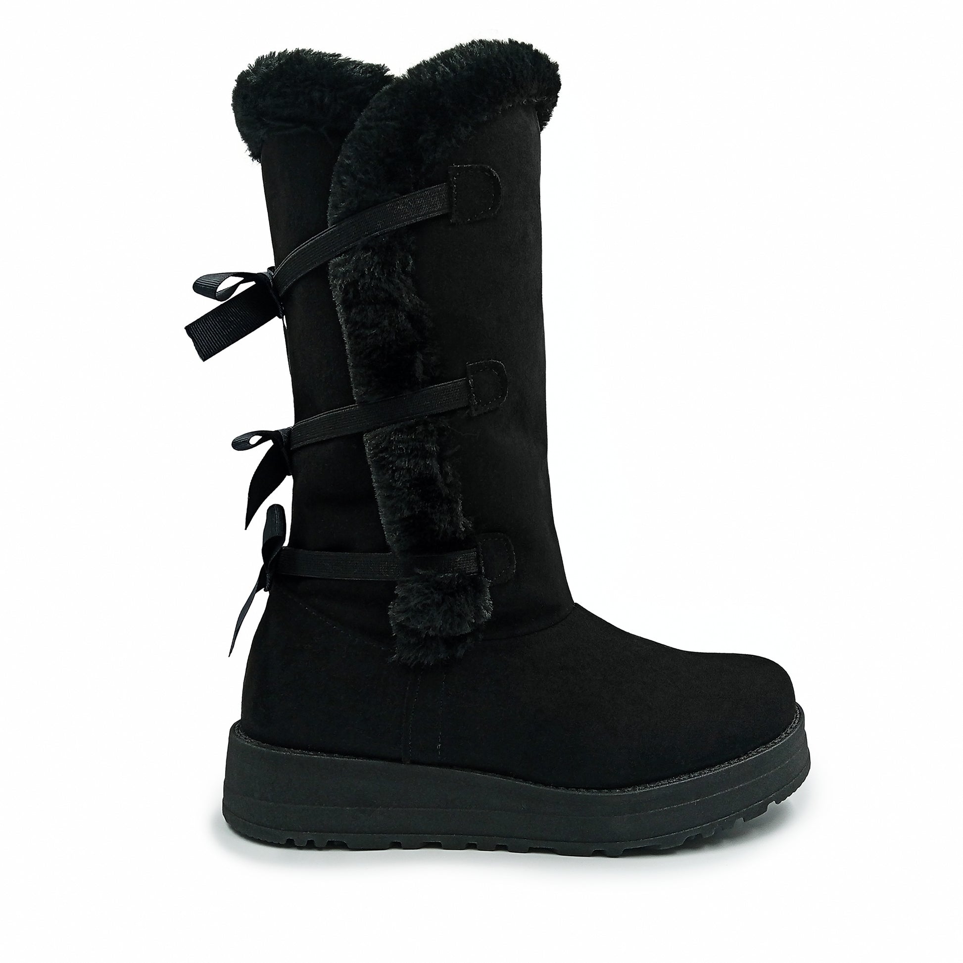 Botas marca BOULLEVARD para dama platforma de material sintetico, perfectas para esta temporada ya que todo el forro interno es afelpado, material gamuza, con detalles de resortes con moño trasero para una mejor adaptabilidad.