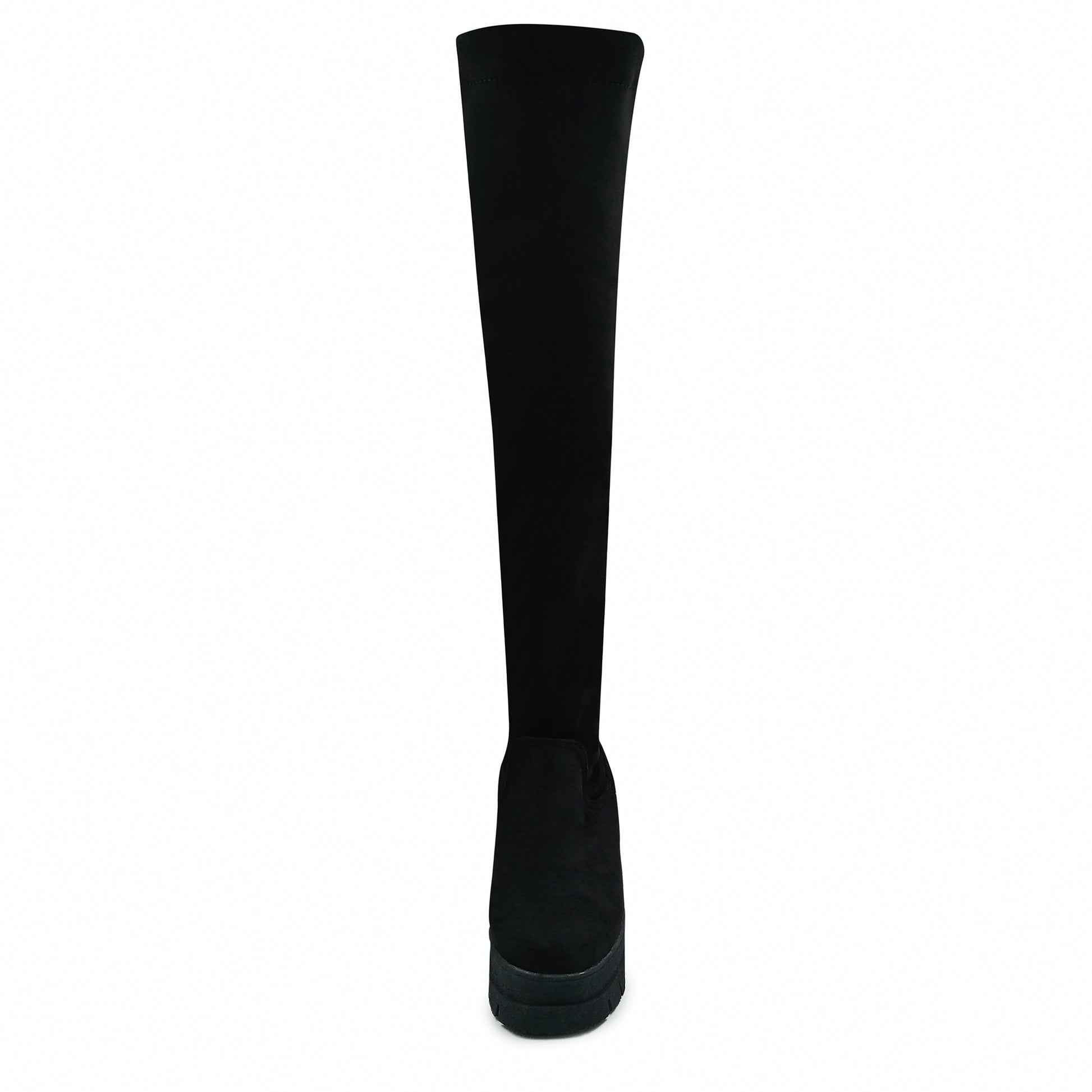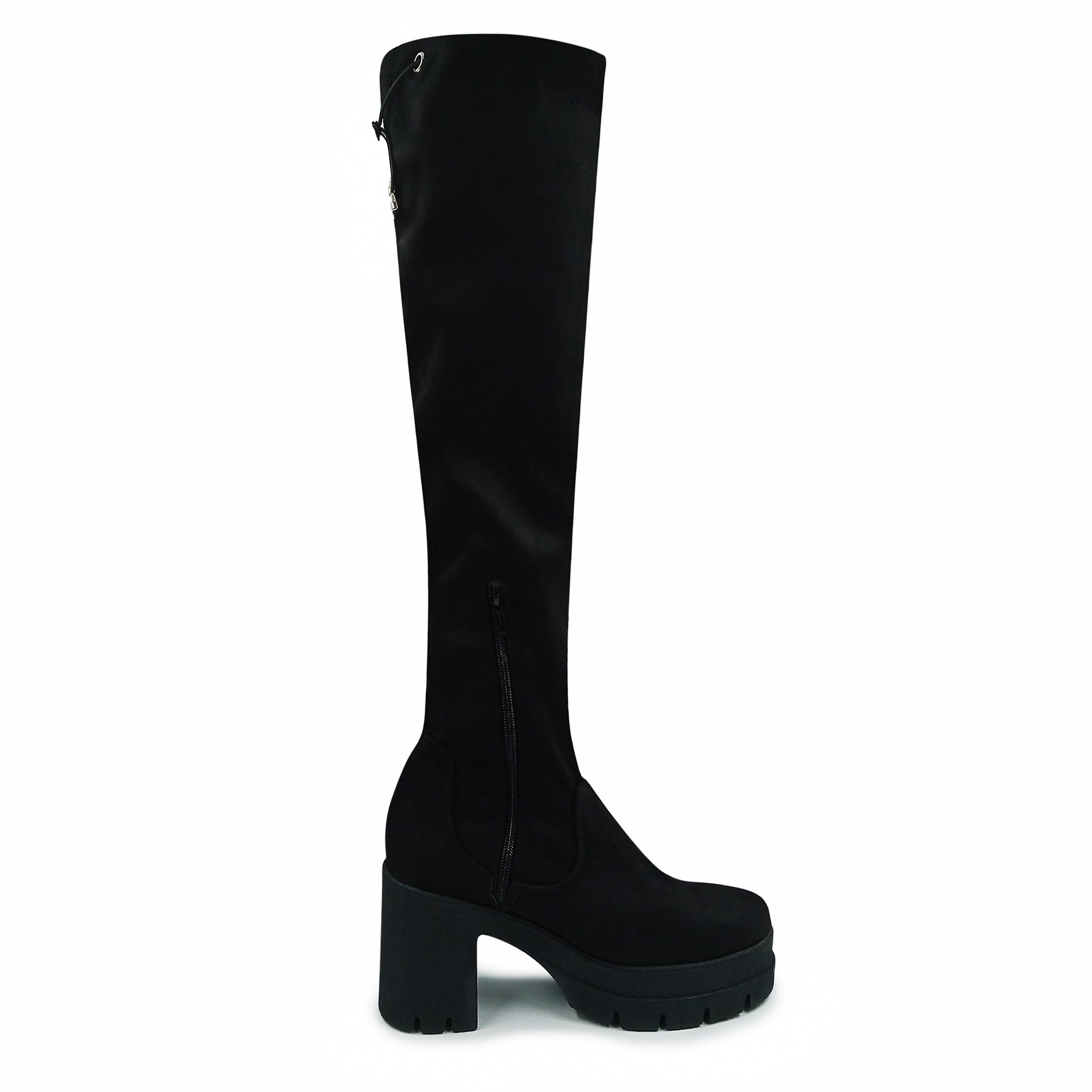 Botas marca FREDELS para dama de tacon, altura arriba de la rodilla, con cierre y tira ajustable de material tipo gamuza, su diseño es perfecto para cualquier ocasion.