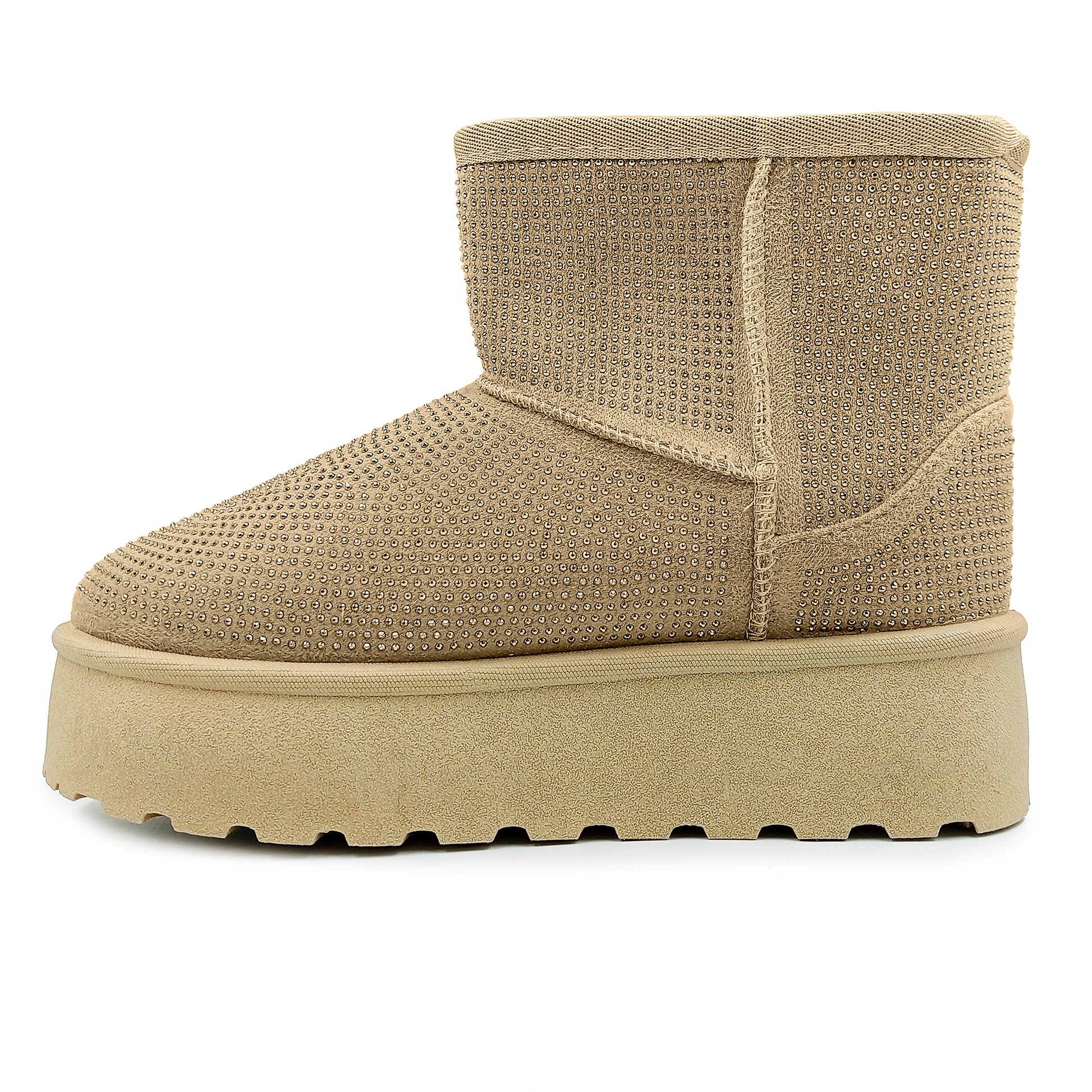 Botas marca FUROR para dama con forro aborregado por dentro, decoracion de pedreria en todo el forro por fuera, suela gruesa lo que las hace mas comodas y perfectas para look casuales