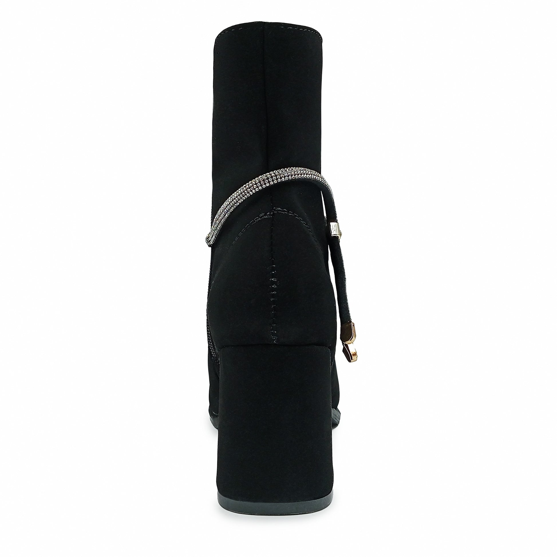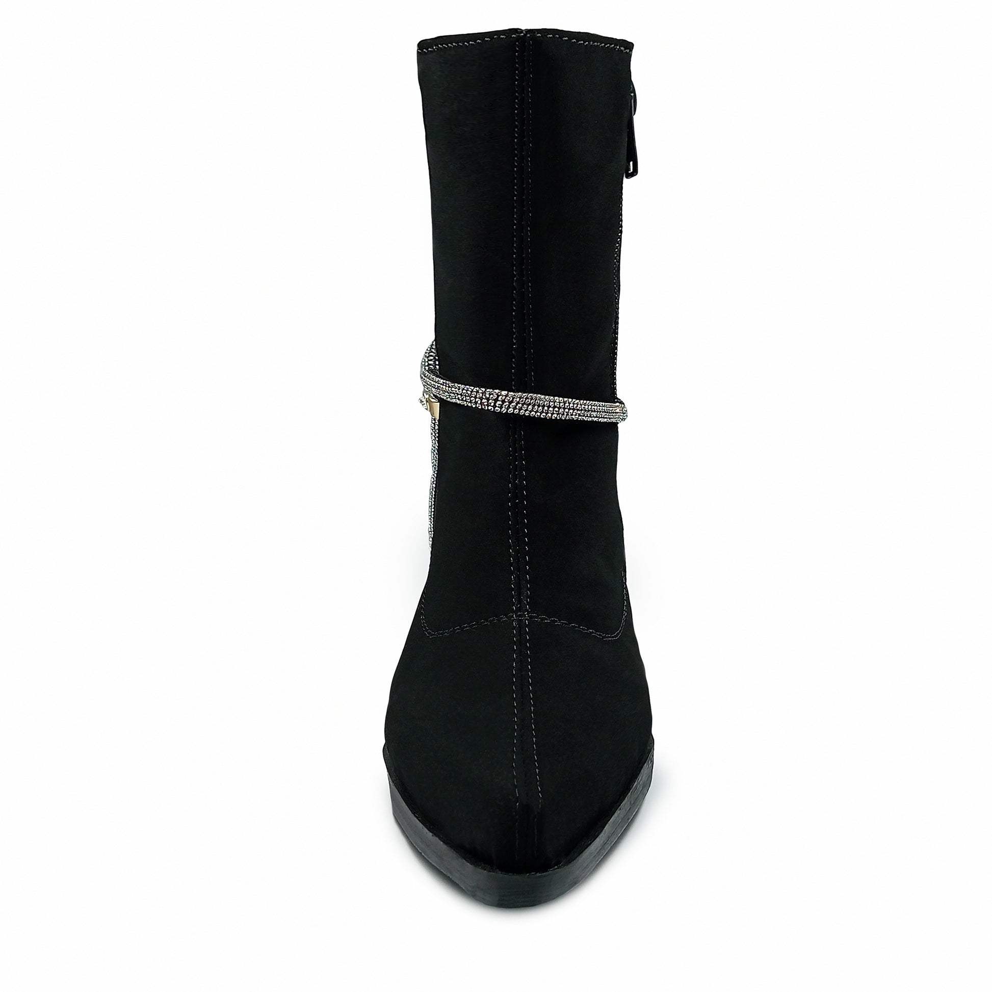 Botas marca ZIZUS para dama, con tacon y detalle de agujeta de pedreria al tobillo, material de gamuza, arma tu mejor look con estas botas