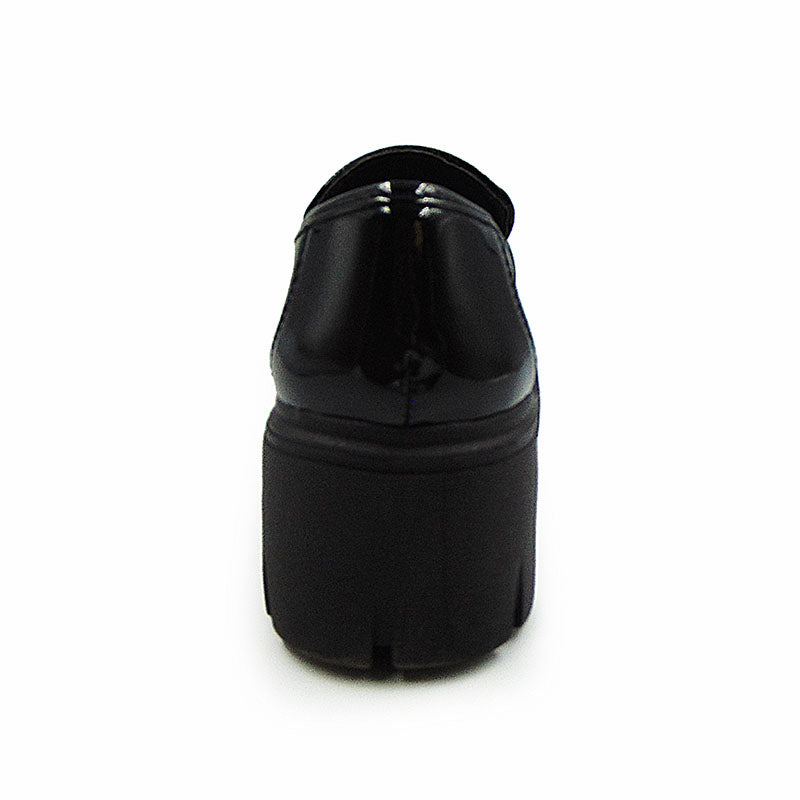 Mocasines marca Caramel para dama con tacón en color negro de material charol