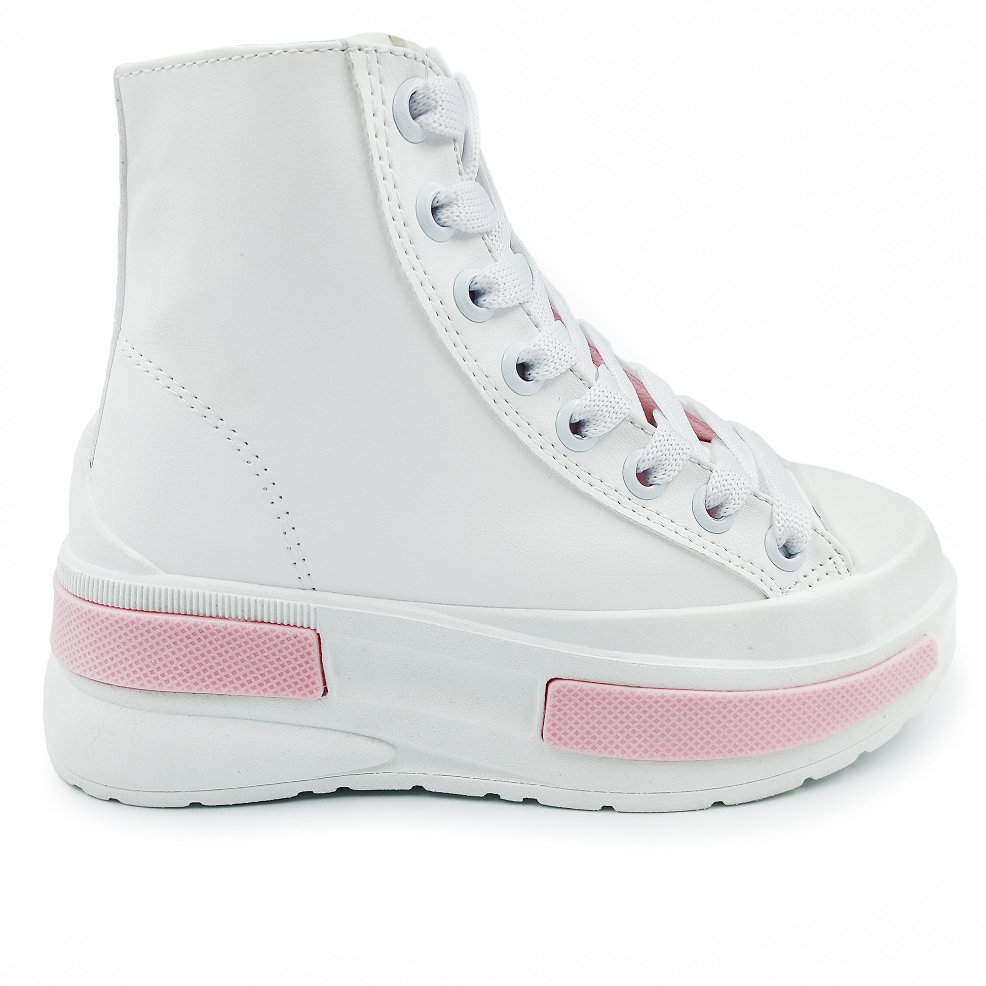 Tenis marca ANBADA tipo bota con plataforma para niña material sintético con detalles en color rosa en la parte de la plataforma y muy cómodos