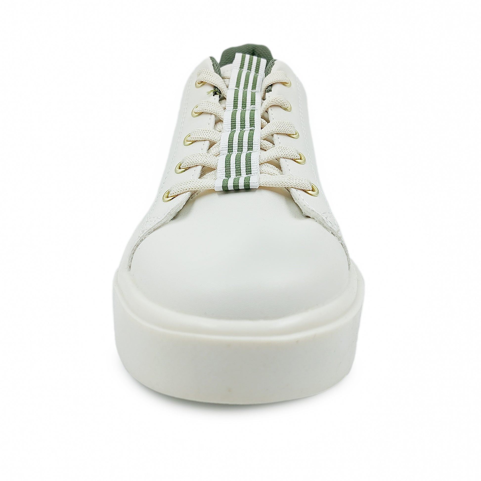 Tenis marca BERLIN para dama en color blanco con verde de material sintético