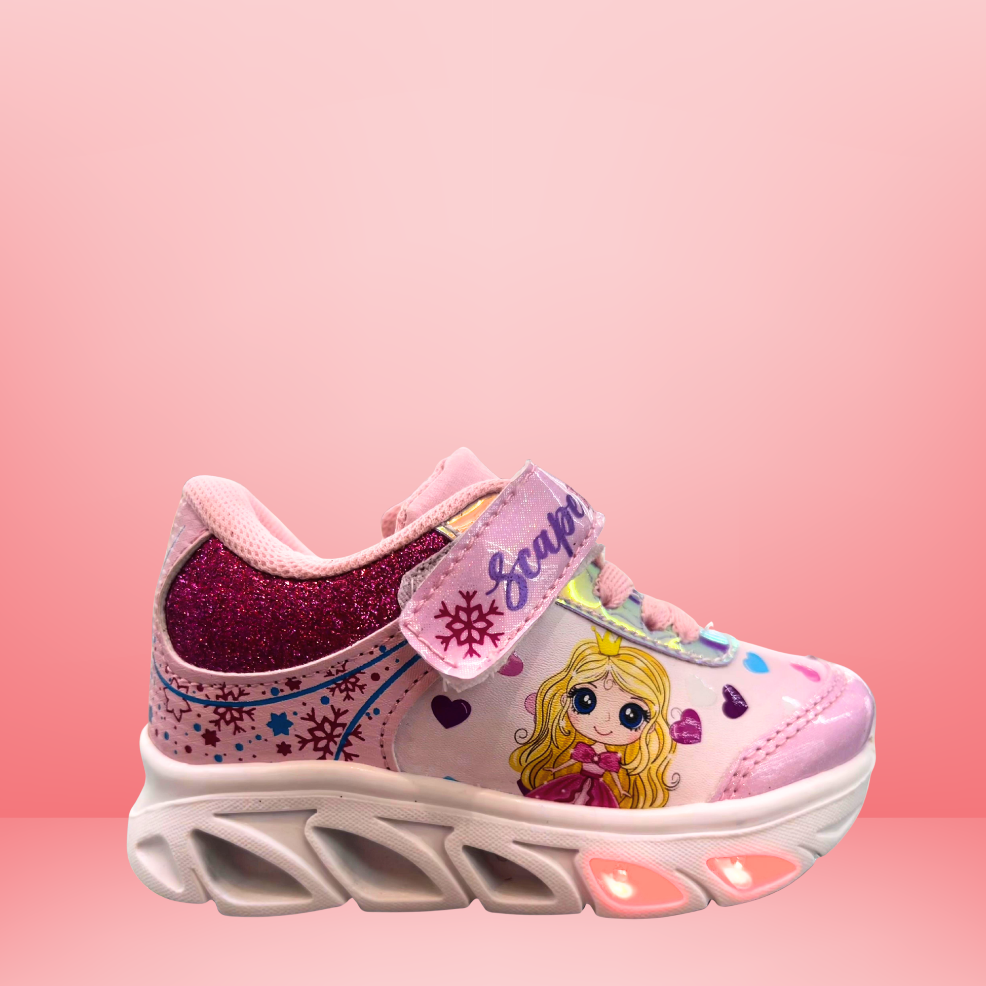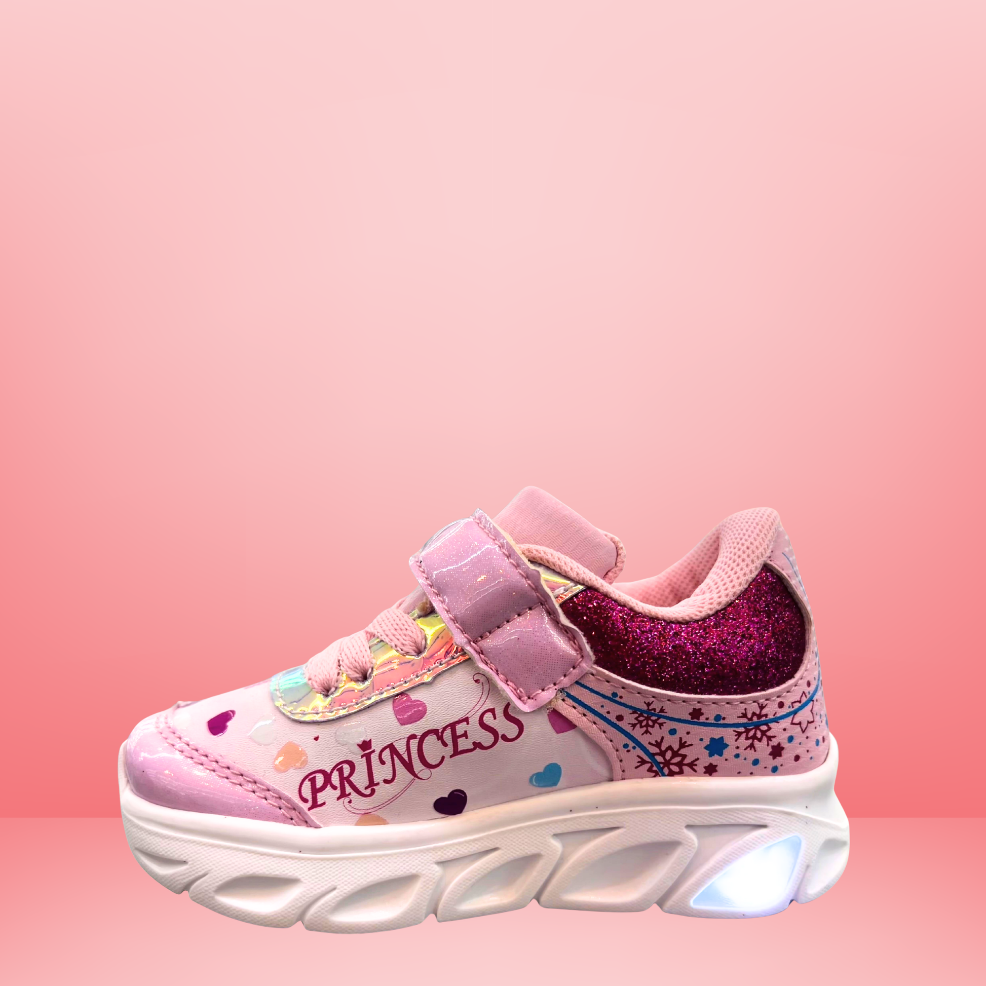 Haz que cada aventura sea mágica con estos increíbles tenis infantiles llenos de brillo y color. Su diseño con ilustración de princesa, detalles en glitter y corazones los convierte en el par favorito para las pequeñas que aman destacar.