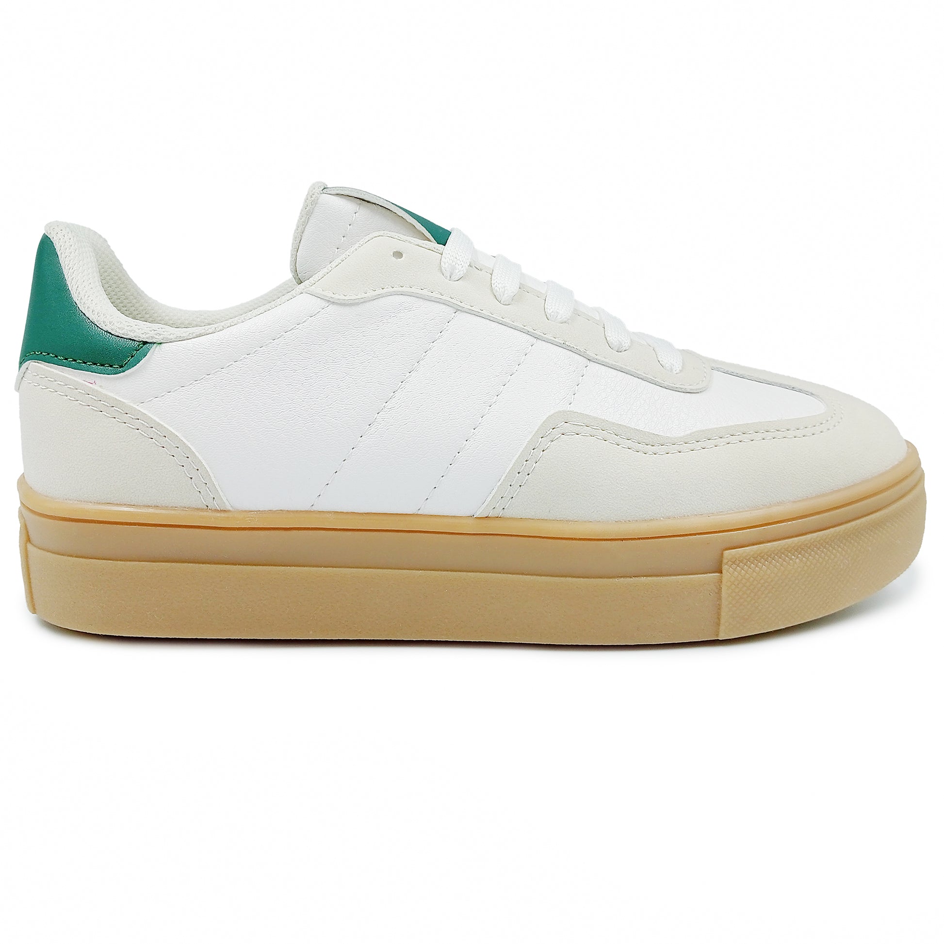 Tenis marca NEOSPORT para dama, suela gruesa y detalles en color verde, diseño casual para combinarlos en diferentes estilos.