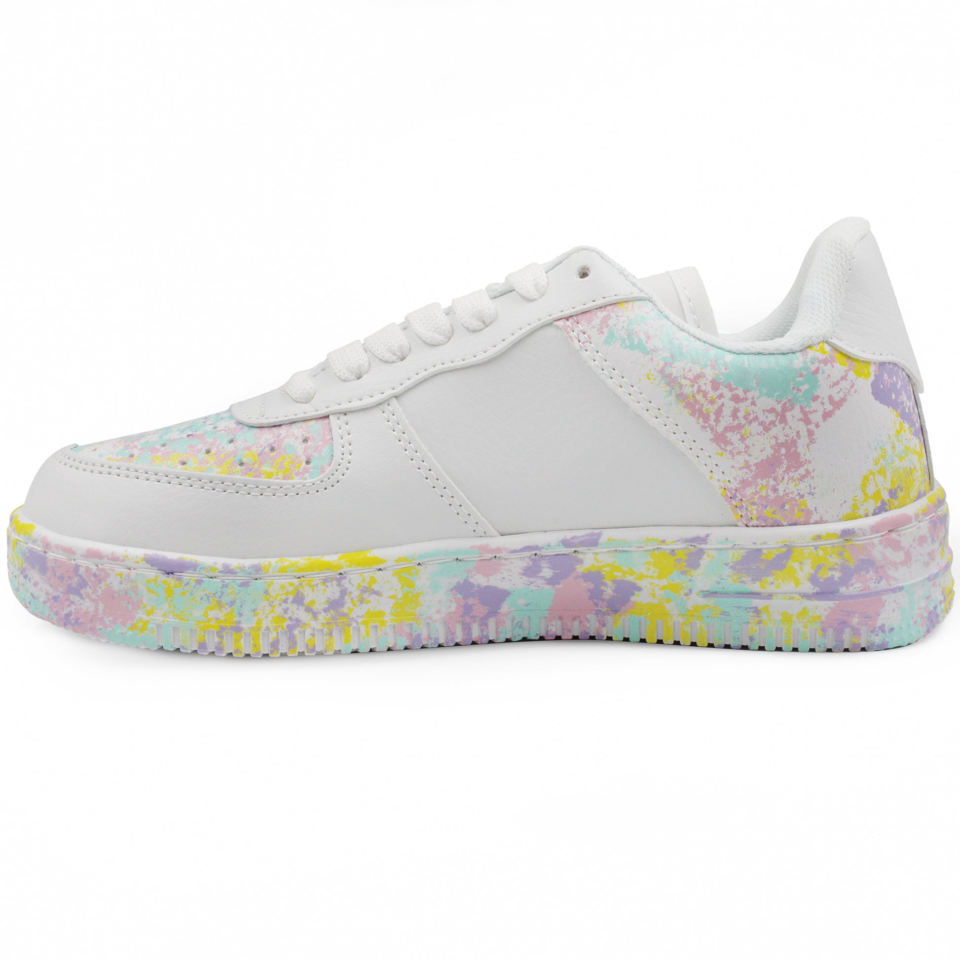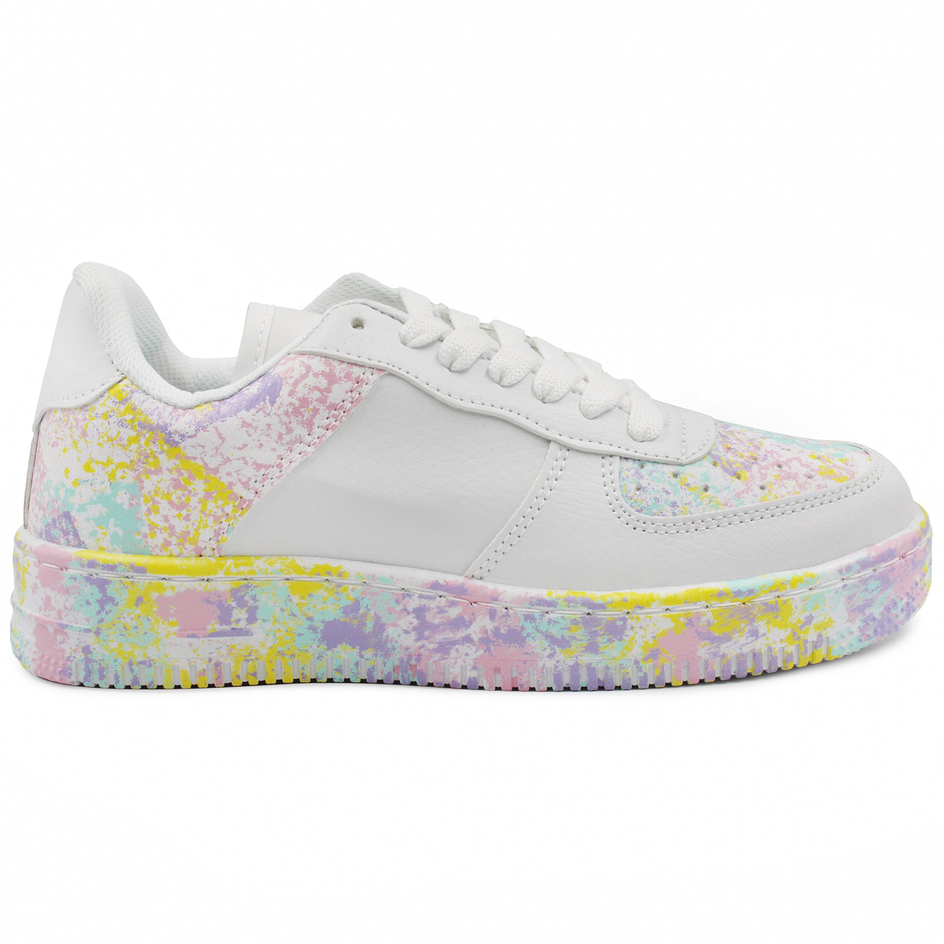 Tenis marca PERUGIA para dama, diseño de manchas de colores en suela y parte del teni, casuales.