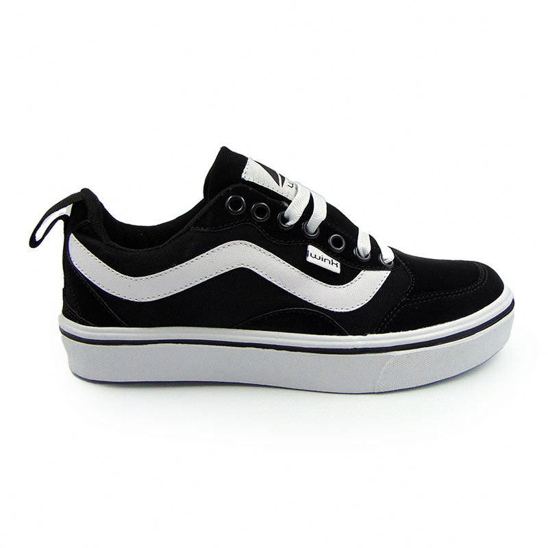 Tenis marca WINK en material textil color negro con blanco tipo choclo