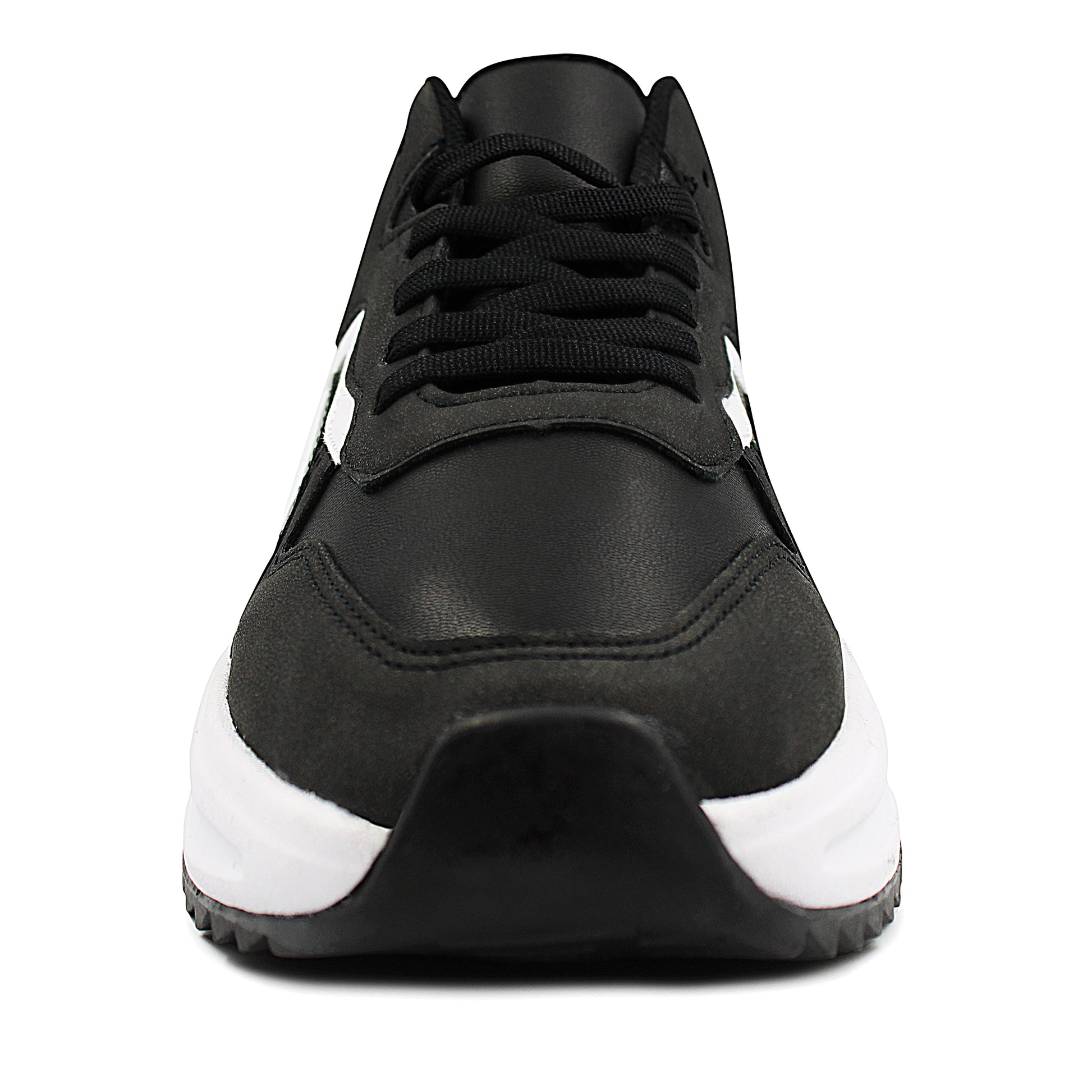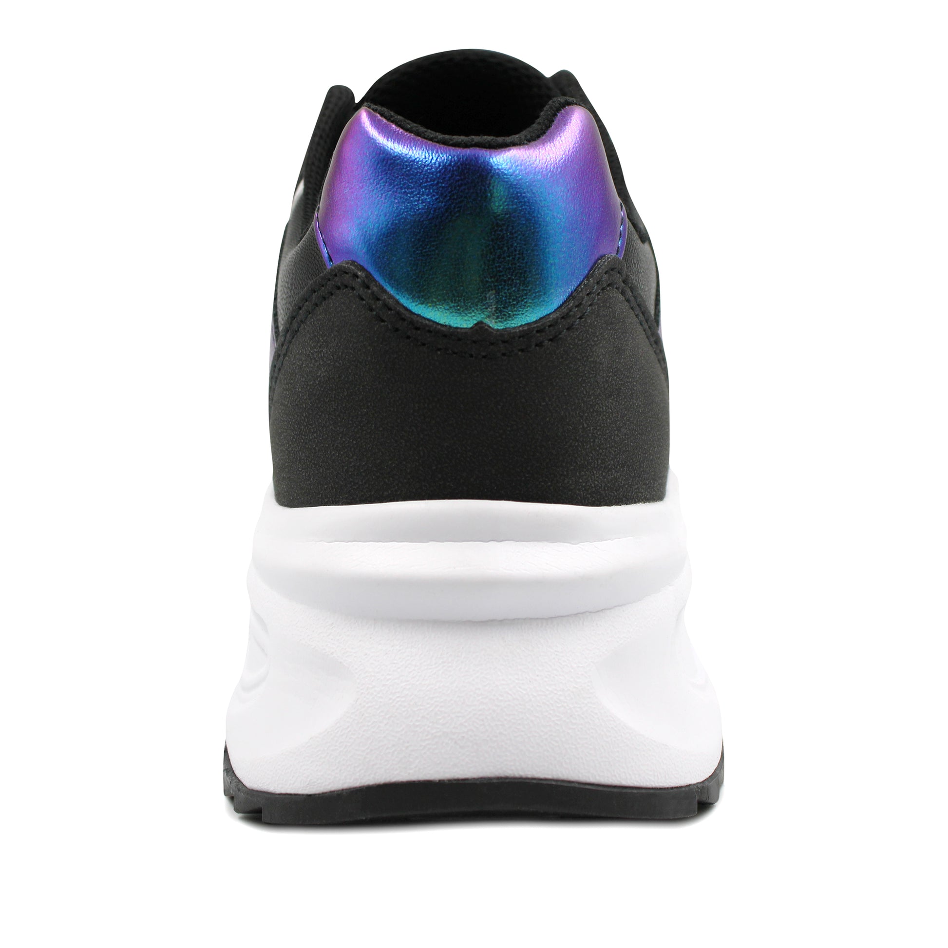 Destaca con estos tenis que combinan el clásico negro con una vibrante tira multicolor, perfecta para un look urbano y moderno.