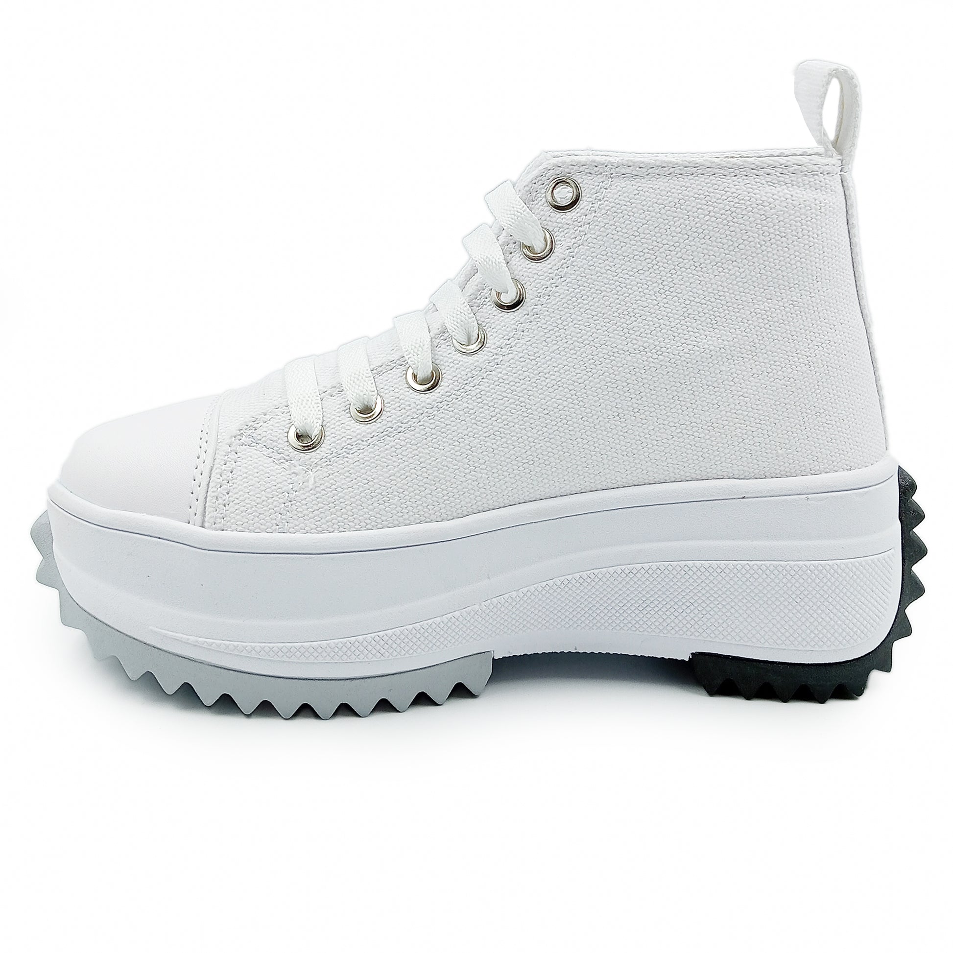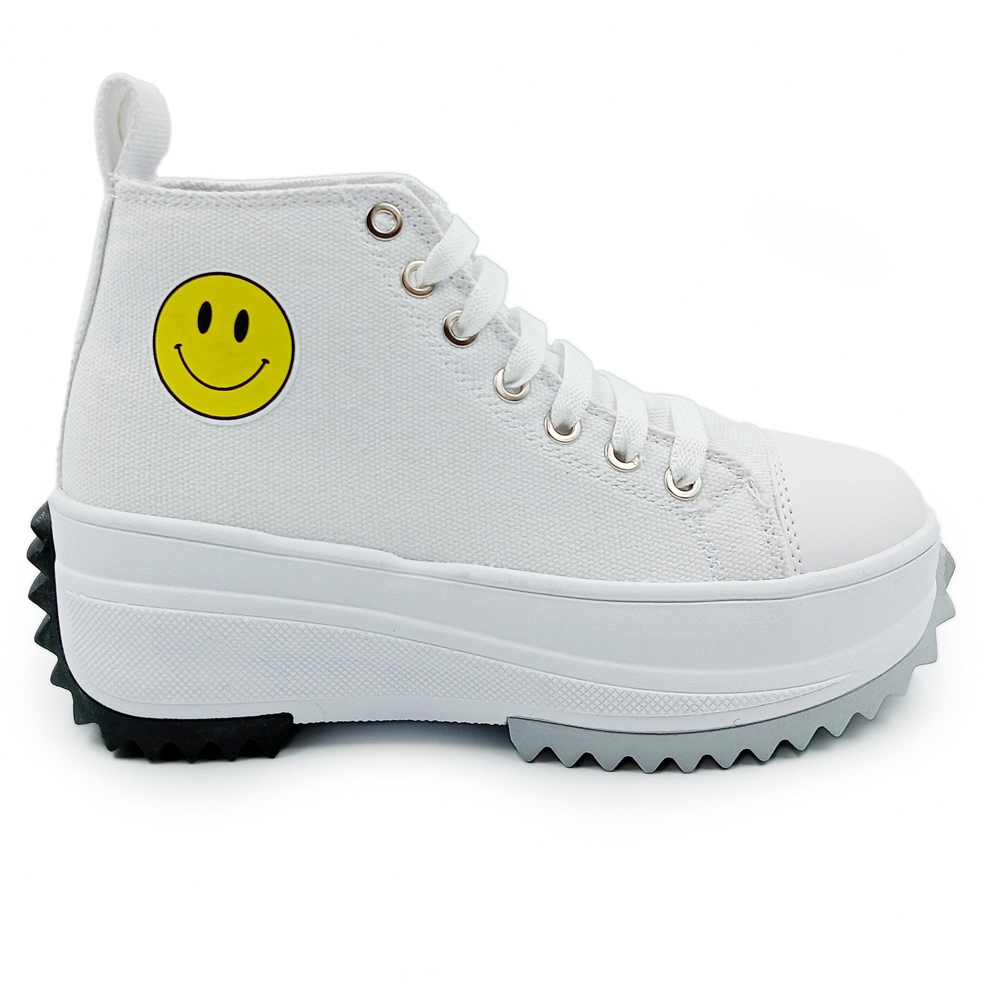 Tenis marca ZIZUS para dama en material textil con estampado de carita feliz tipo bota con plataforma