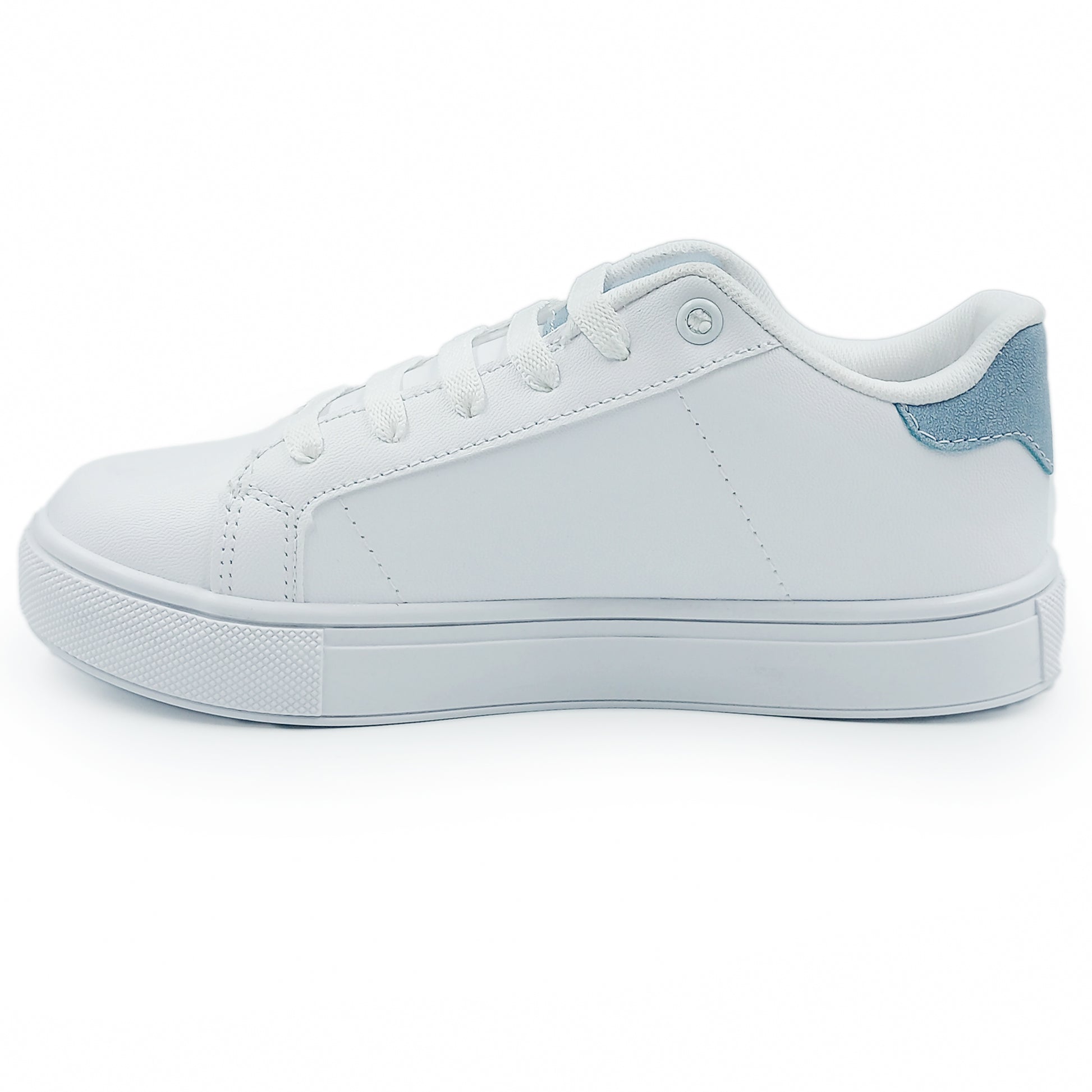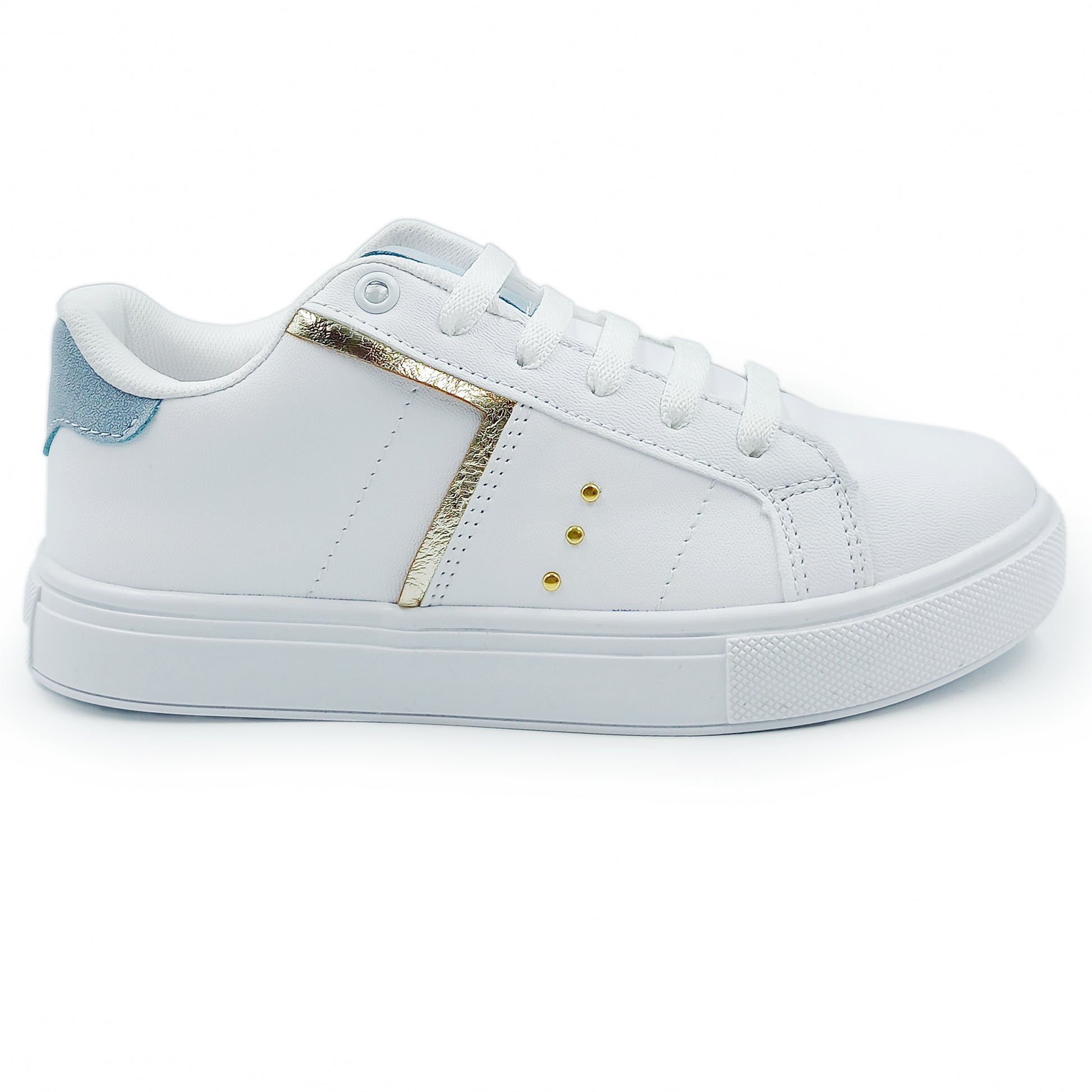 Tenis marca ZIZUS para dama en color blanco con detalles azul y oro de material sintético