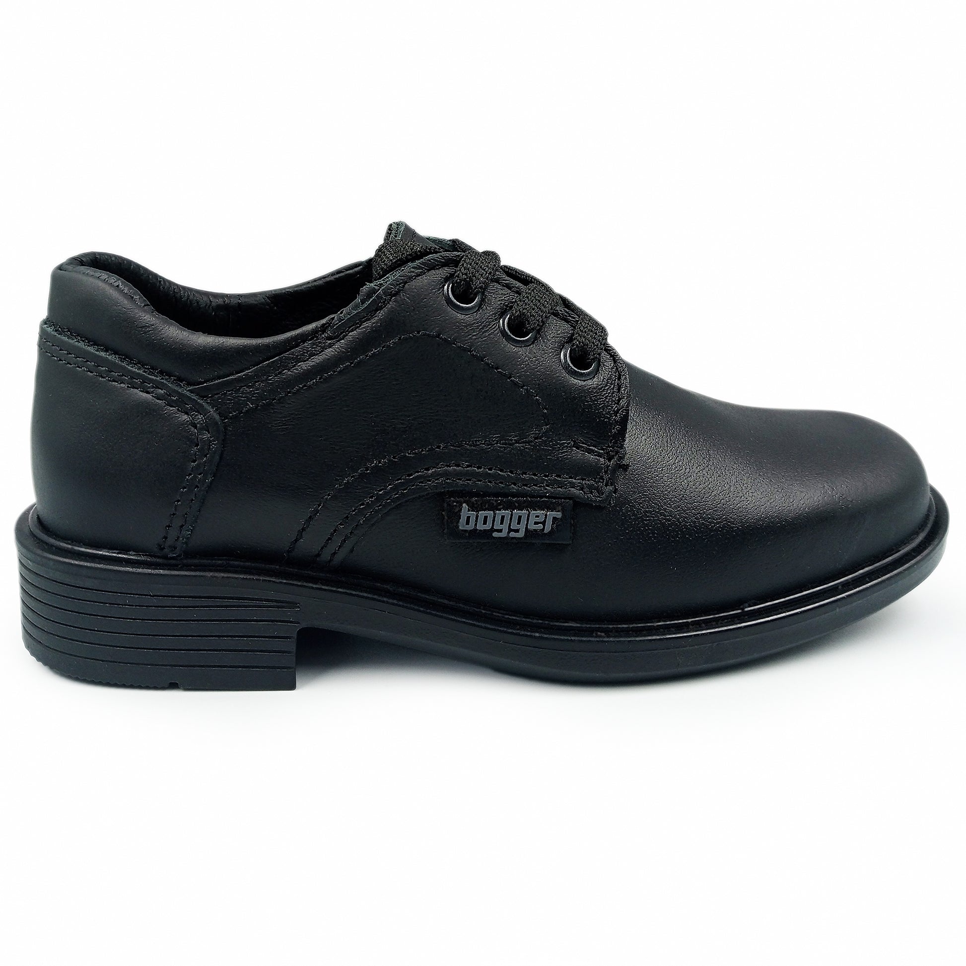 Zapato escolar para niño y caballero de la marca Bogger con agujetas en color negro