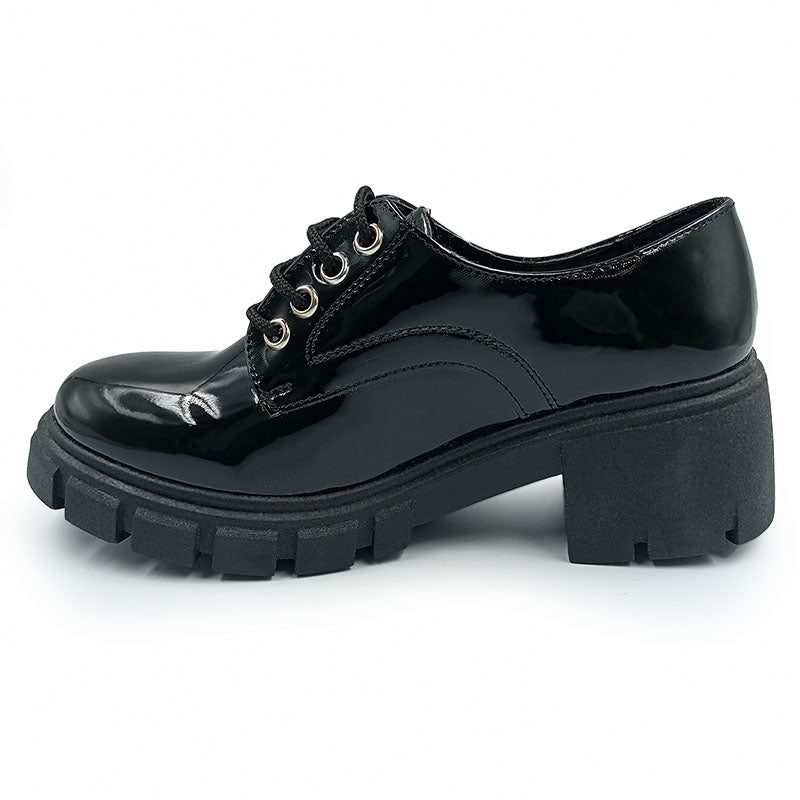Zapatos marca Caramel de tacón para dama en material charol negro