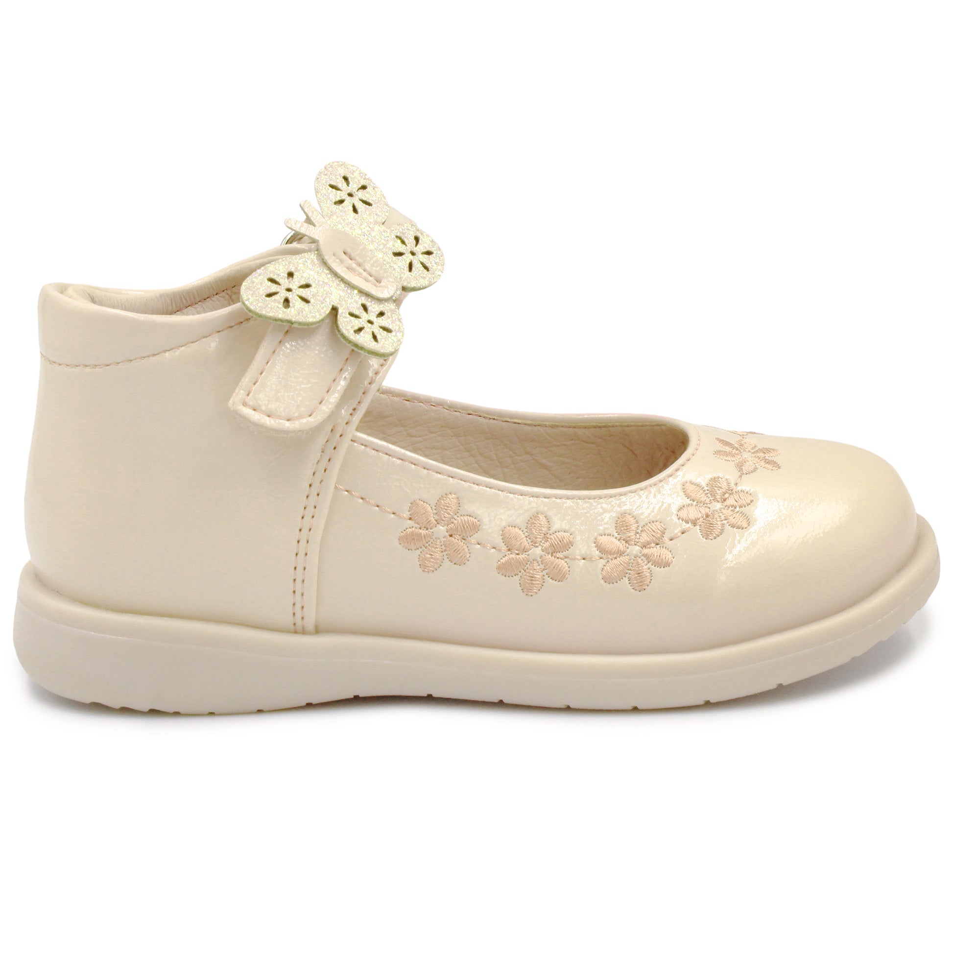 Zapatos marca VAVITO de charol para niña con una mariposa en la correa.